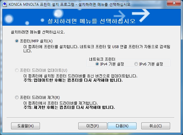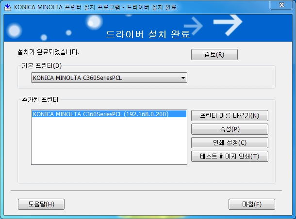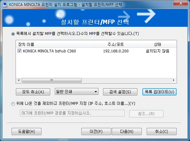 코니카미놀타 복합기의 자동 드라이버설치