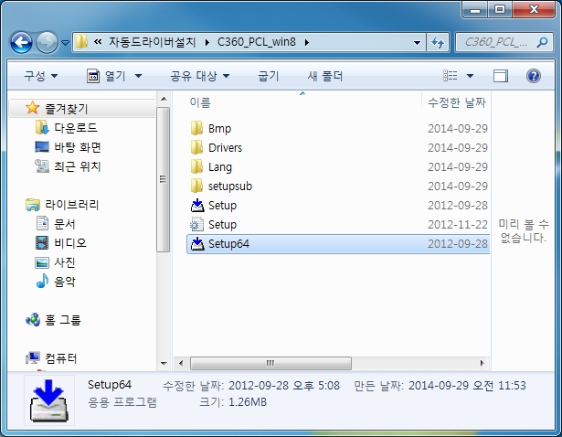 컴퓨터 운영체제가 64Bit인 경우는 Setup64 실행파일을 더블클릭 합니다.